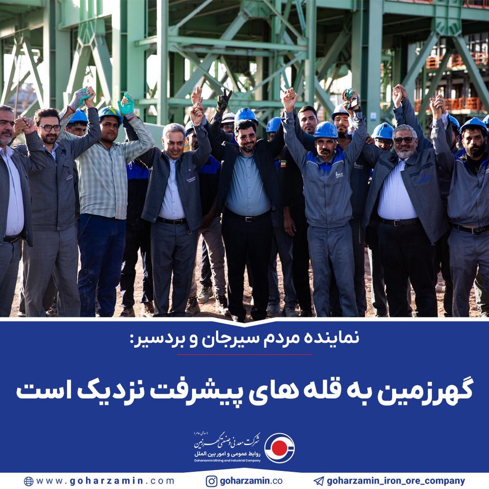 در این بازدید محمد محیاپور مدیرعامل گهرزمین ضمن تبریک به محمد معتمدی زاده نماینده مردم سیرجان و بردسیر و با اشاره به اقدامات انجام شده در این شرکت عنوان کرد: در یک سال گذشته بیش از ۶۰ درصد در انجام پروژه ها پیشرفت داشته ایم که امیدواریم با برنامه ریزی های انجام شده، تا پایان سال جاری پروژه های مگا مدول های اسفنجی را به سرانجام و بهره برداری برسانیم. این موضوع نیازمند حمایت مسوولان بردسیر و سیرجان است که بتوانیم طرح های توسعه ای را به اهداف مشخص شده برسانیم.