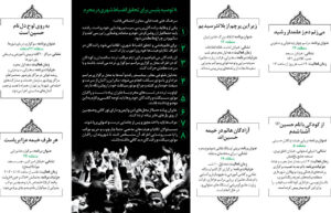 خبرداری؟ محرم شد و شهر و شهروندان رخت عزا به تن کردند. پرچمهای سیاه در کوی و برزن به اهتزاز درآمدهاند و هیئتها برپا شدهاند و نوای شعر محتشم «باز این چه شورش است که در خلق آدم است» طنینانداز شده است. علاوه بر فضاسازی شهری به مناسبت ایام محرم، شهرداریهای مناطق ۲۲گانه هم برنامههای سوگواری پیشبینی کردهاند که در دهههای اول و دوم محرم در پایتخت اجرا میشوند.