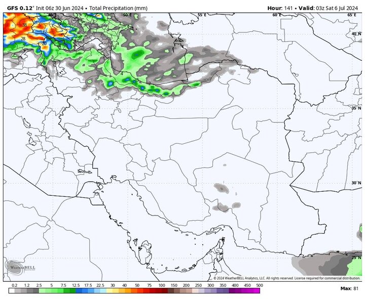امروز در خراسان رضوی، شرق خراسان شمالی، ارتفاعات استانهای مازندران، البرز، تهران و فردا یکشنبه در ارتفاعات استانهای گیلان، مازندران، اردبیل و شرق تهران رگبار پراکنده پیشبینی شده است.