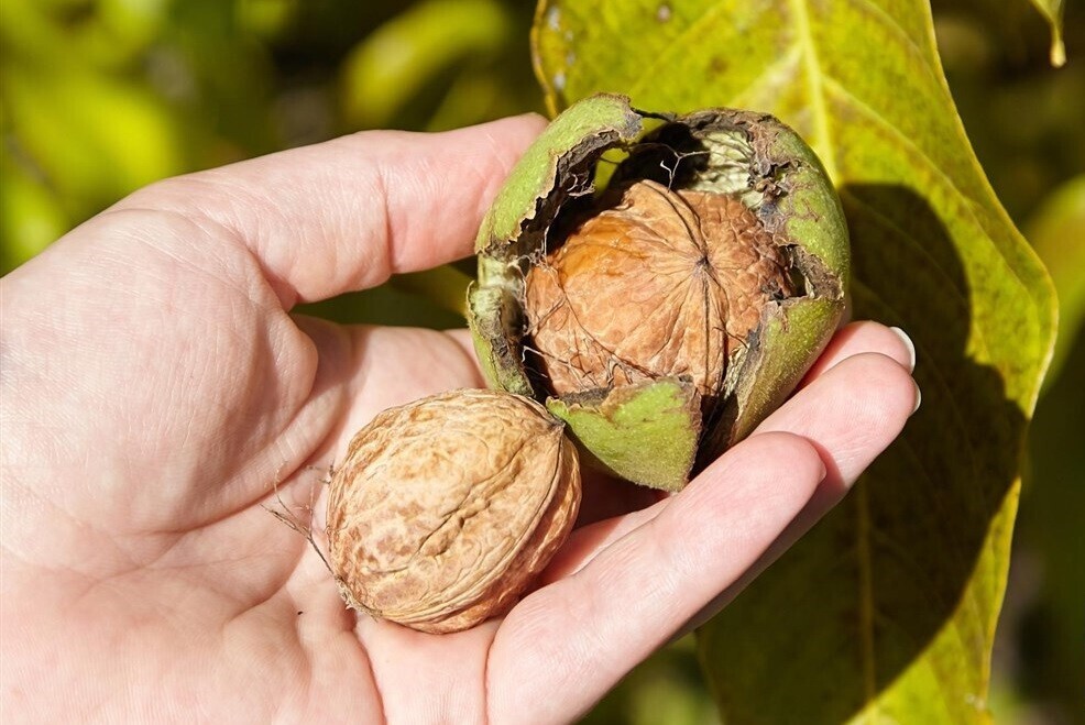 - اگر گردوها کاملاً رسیده باشند، پوست سبز آنها کمی ترک خورده و میتوانید به راحتی آن را با دست جدا کنید.