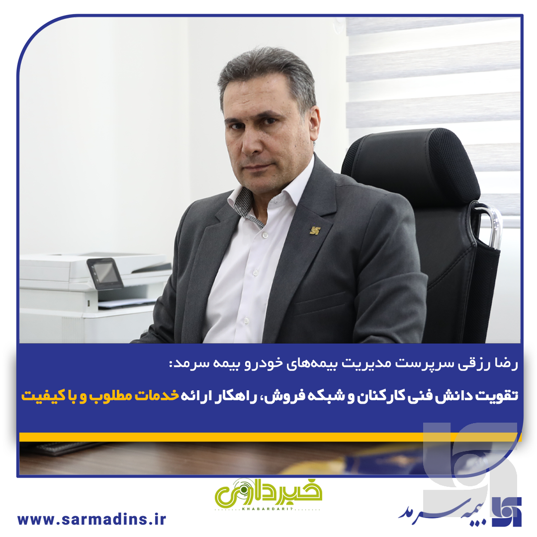 خبرداری؟ سرپرست مدیریت بیمههای خودرو بیمه سرمد با تاکید بر اهمیت تقویت دانش فنی کارکنان و شبکه فروش به منظور ارائه خدمات با کیفیت به بیمهشدگان گفت: بیمه سرمد در یکسال اخیر با برگزاری دورههای آموزشی در حوزههای مختلف بیمهای خصوصاً بیمههای اتومبیل (شخص ثالث و بدنه) برای همکاران شعب و شبکه فروش سراسر کشور نسبت به تقویت دانش فنی آنها به منظور تسریع در ارائه خدمات مطلوب و با کیفیت به مشتریان و زیاندیدگان، در جهت افزایش سطح رضایتمندی بیمهشدگان و ضریب نفوذ و سهم بازار اقدام نموده است.