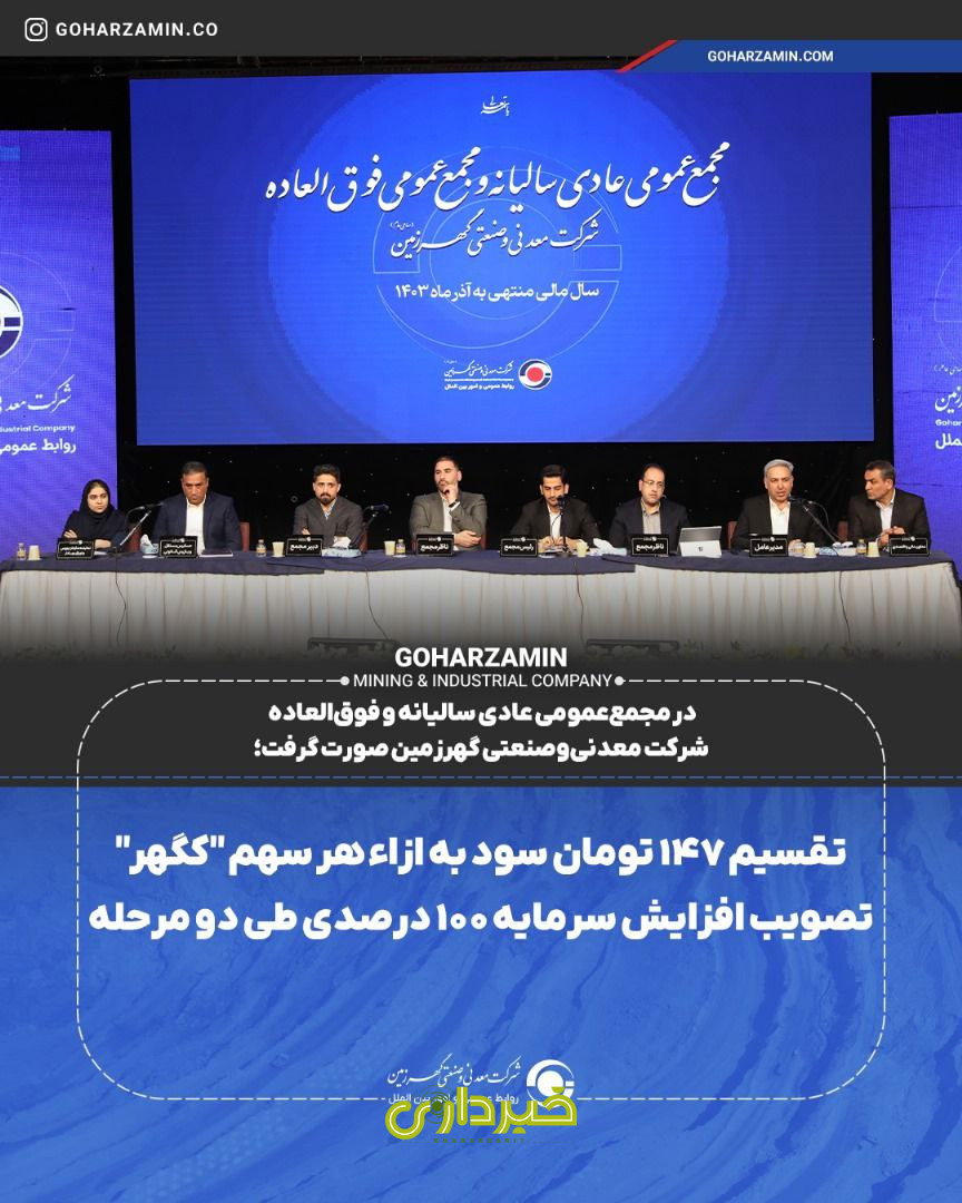 مهندس محمد محیاپور مدیرعامل “کگهر” در ابتدای این مجمع با ارائه گزارشی از اهم اقدامات انجام شده و طرحهای توسعهای جاری و در دست اقدام شرکت طی سال مالی گذشته؛ از افزایش سرمایه گهرزمین خبر داد.