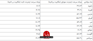 در همین ماه میانه سرعت اینترنت موبایل جهان ۹۱.۲۴ و میانه سرعت اینترنت ثابت جهان ۹۷.۶۱ مگابیت برثانیه بود.