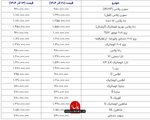 به نقل از پول نیوز، بر اساس تازهترین گزارشهای منتشر شده از بازار خودرو، قیمت اغلب خودروهای داخلی در هفته منتهی به ۲۰ آذر ۱۴۰۴ نسبت به هفته گذشته افزایش یافته است. این روند صعودی در برخی مدلها بیش از ۱۰ درصد گزارش شده و نشاندهنده تداوم افزایش قیمتها در بازار خودرو است.