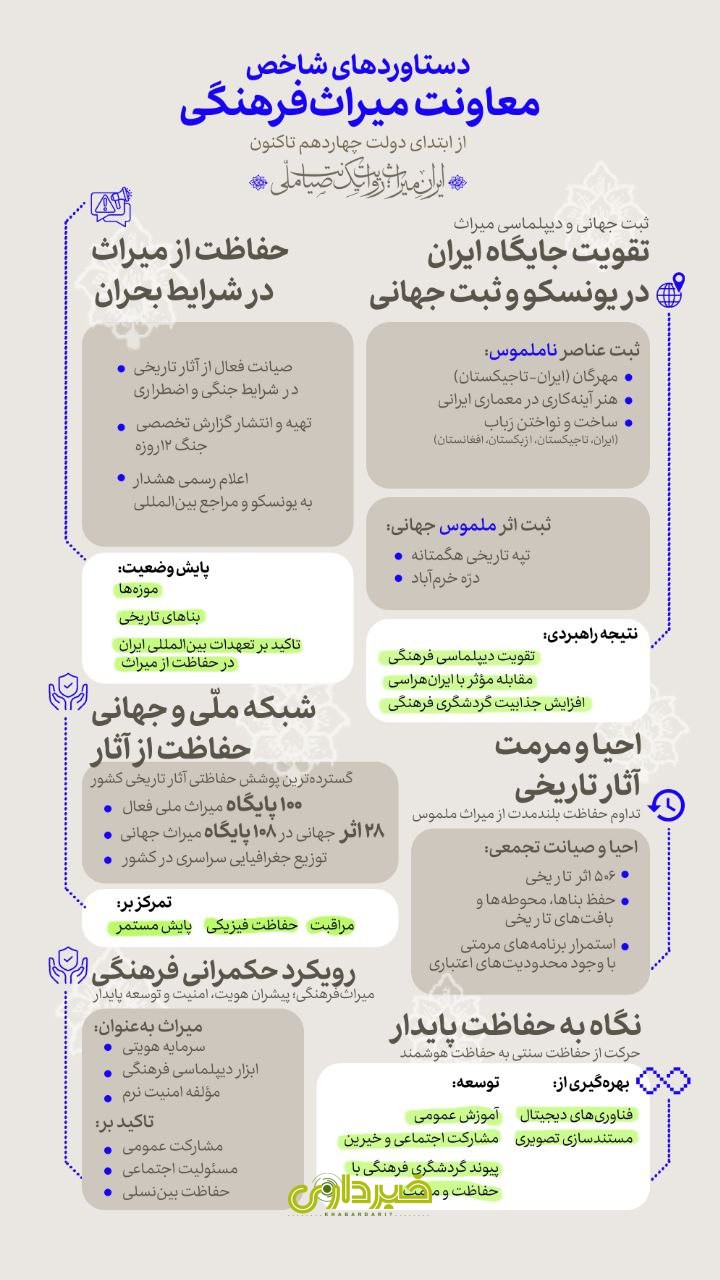 در ۱۸ ماه نخست فعالیت دولت چهاردهم، حوزه میراثفرهنگی با تمرکز بر صیانت هوشمند، فعالسازی ظرفیتهای تاریخی، تقویت دیپلماسی فرهنگی و پیوند میراث با توسعه پایدار، وارد مرحلهای نوین از کنشگری ملی و بینالمللی شد؛ مسیری که میراث را از حاشیه به متن سیاستگذاری فرهنگی کشور بازگرداند.