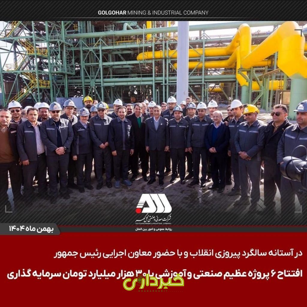 در آستانه چهل و هفتمین سالگرد پیروزی انقلاب اسلامی، صبح امروز دوشنبه ۲۰ بهمن، ۶ پروژه عظیم صنعتی و آموزشی در منطقه گل گهر سیرجان به دست معاون اجرایی رئیس جمهور افتتاح و بهره برداری از آنان آغاز شد.
