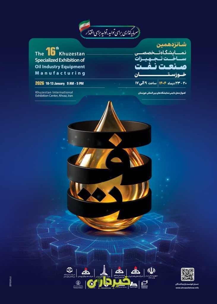 پوستر شانزدهمین نمایشگاه تخصصی ساخت تجهیزات صنعت نفت خورستان با شعار “سرمایه گذاری برای تولید، تولید برای اقتدار” رونمایی شد.