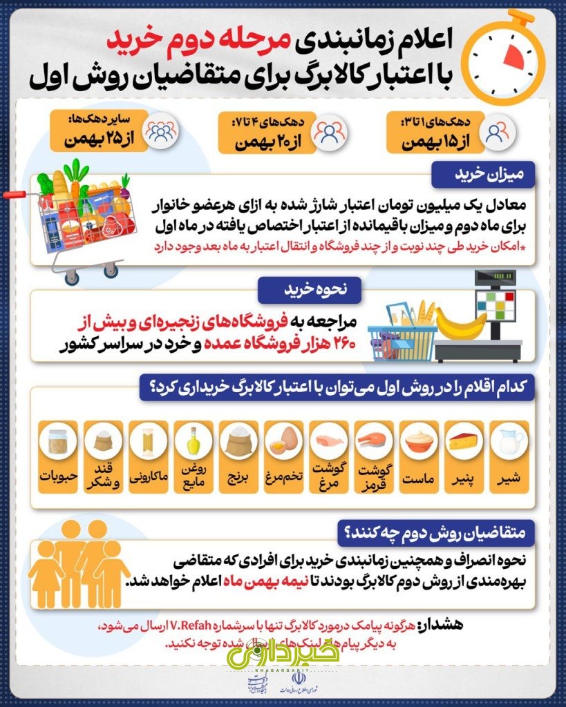 اعلام زمانبندی مرحله دوم خرید با اعتبار کالابرگ برای متقاضیان