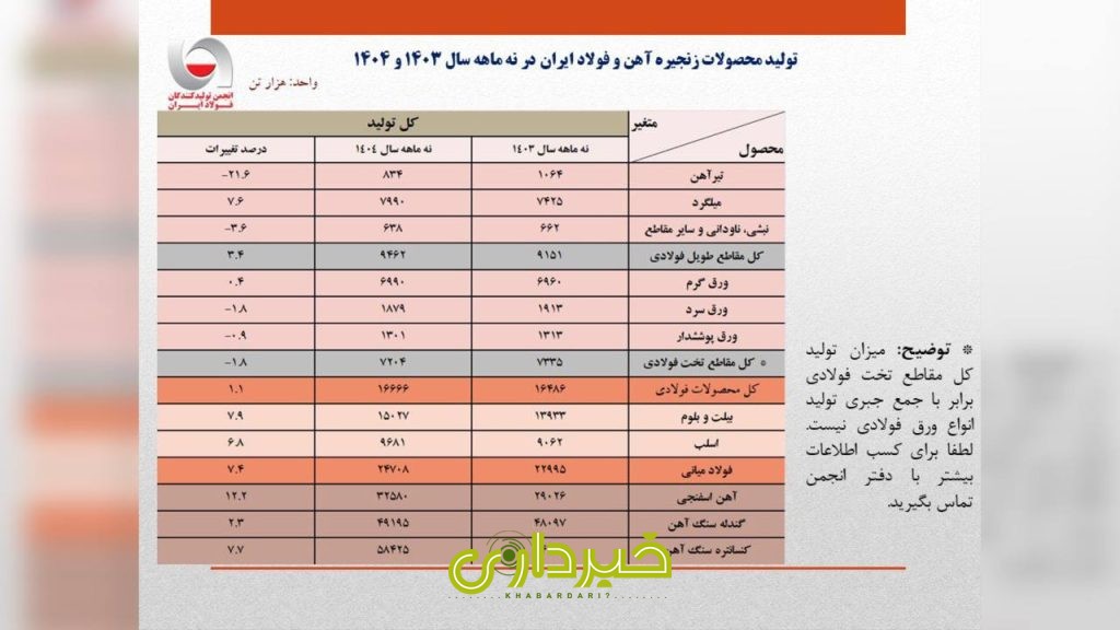 رشد 7.4 درصدی تولید فولاد ایران در 9 ماهه 1404/ جزئیات تحلیلی تولید محصولات زنجیره فولاد